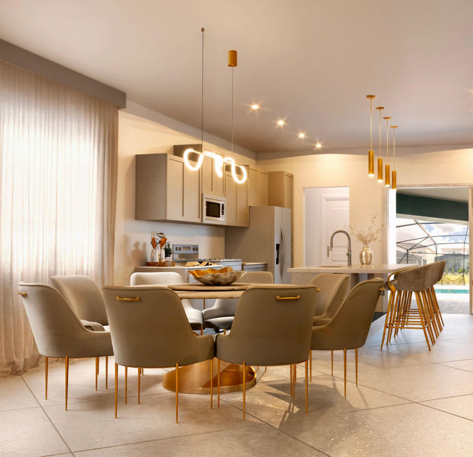 O design valoriza a vista para a área externa e piscina, trazendo a sensação de bem-estar e conexão com o lazer. Um projeto que une praticidade, sofisticação e hospitalidade, perfeito para férias inesquecíveis.